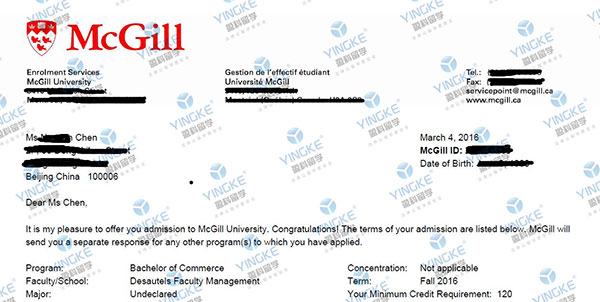 麥吉爾大學(xué)的OFFER 錄取截圖: