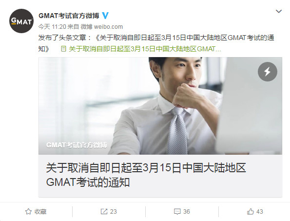GMAT考試更新:即日起至3月15日之前中國(guó)大陸所有考試取消!