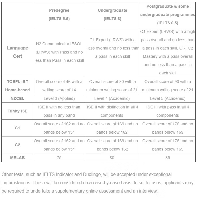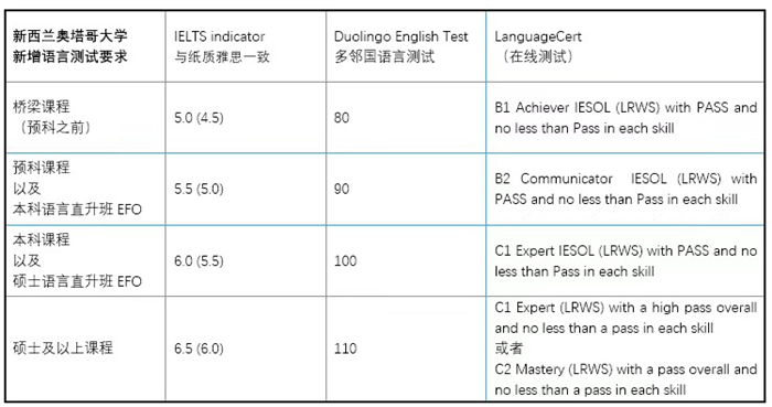 預(yù)科、本科、碩士及以上課程以及語言直升班課程全部接受多鄰國英語測試以及LanguageCert在線測試來進(jìn)行申請,詳情如下: