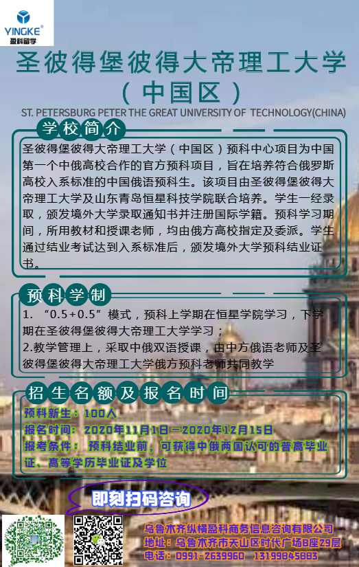 1. “0.5+0.5”模式,預(yù)科上學(xué)期在青島恒星科技學(xué)院學(xué)習(xí)(2020年12月-2021年7月),下學(xué)期在圣彼得堡彼得大帝理工大學(xué)學(xué)習(xí);