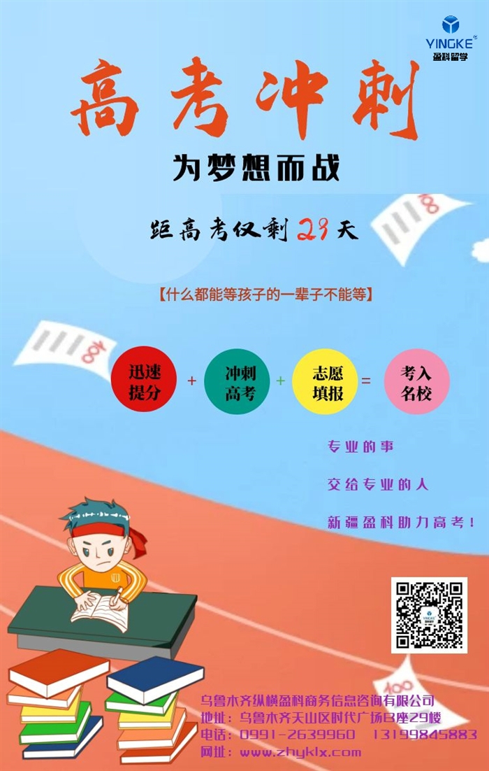 更多留學(xué)、高考相關(guān)資訊,請關(guān)注微信公眾號“新疆盈科留學(xué)”或加入微信群“盈科高考志愿填報公益講座沙龍”。